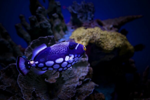 Синяя рыба в горошек подводные обитатели кораллового рифаСиняя рыба в горошек подводные обитатели кораллового рифа