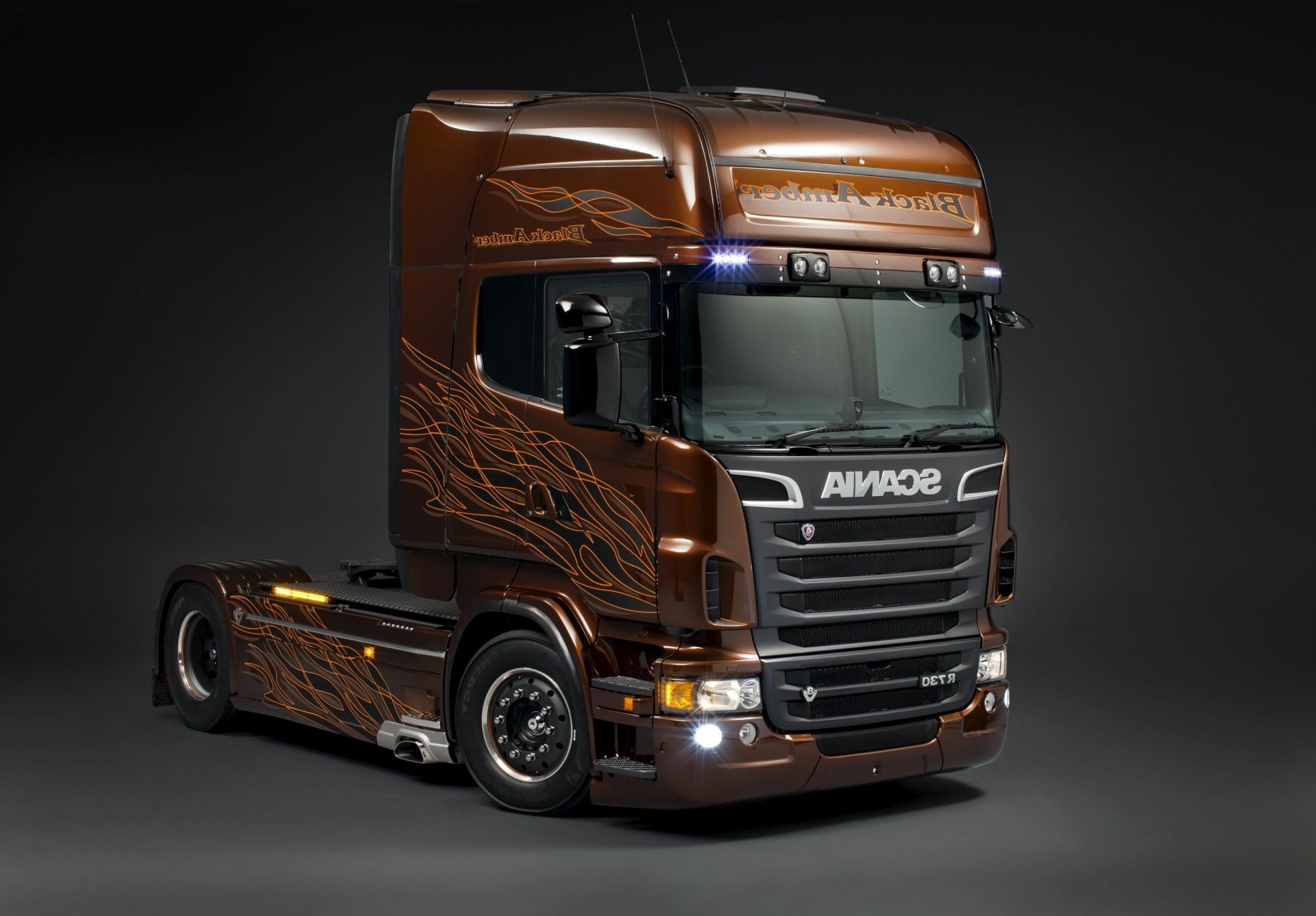 Кабина грузовика скания на фоне