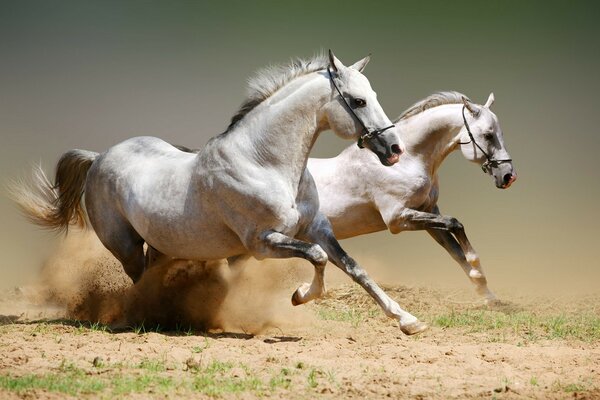 Тройка белых лошадей на море и звездном фоне чёрного неба