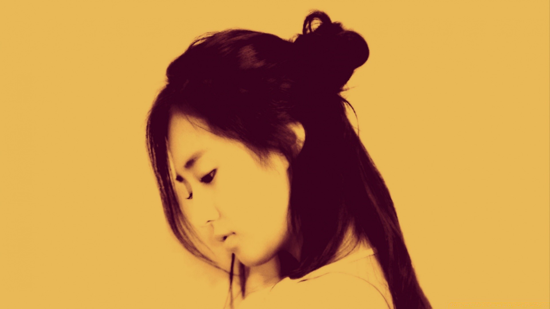 Девушка в профиль на желтом фоне
