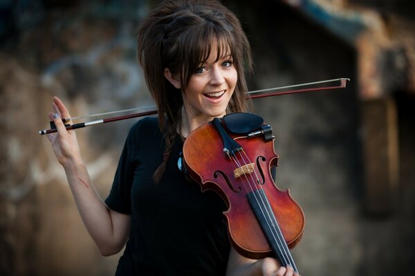 Молодая девушка стоит с скрипкой