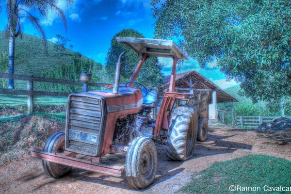 Трактор у дерева на открытом воздухе
