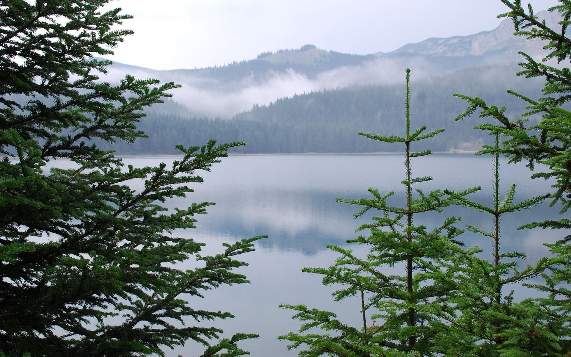 Туман в горном хвойном лесу