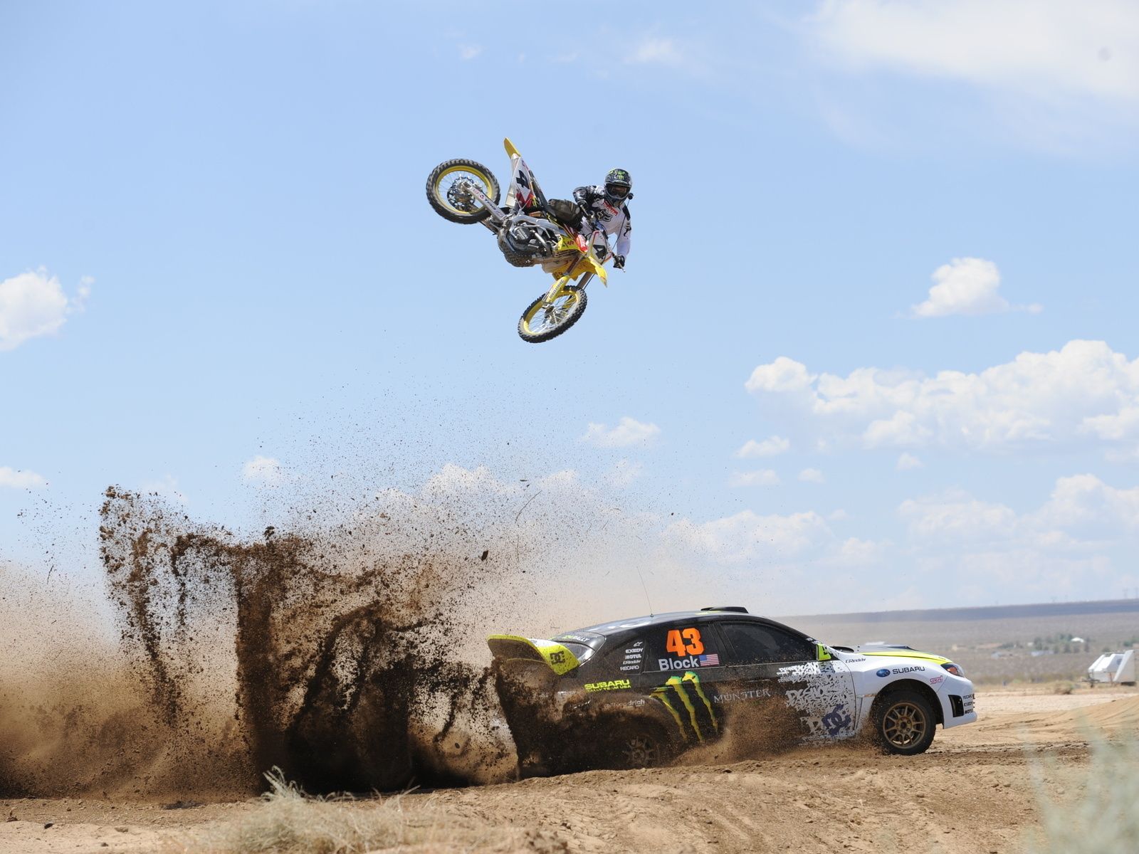 Мотоциклист в движении на песке