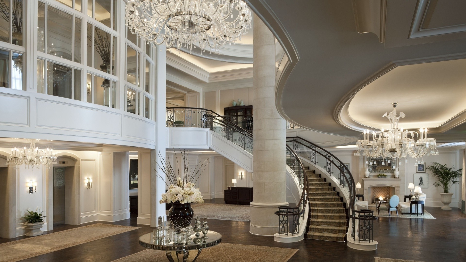 Интерьер гостиной в современном светлом стиле со стеклянным столом и бежевыми тонами мебели