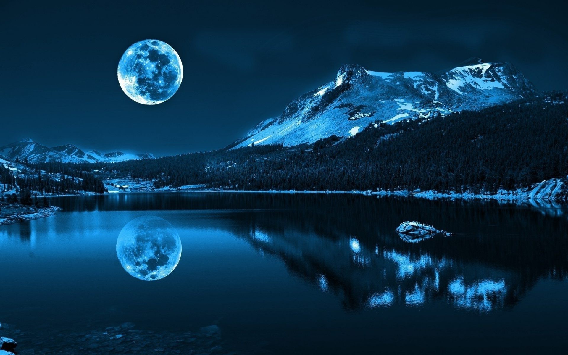 Свисающая луна над синевой рёки