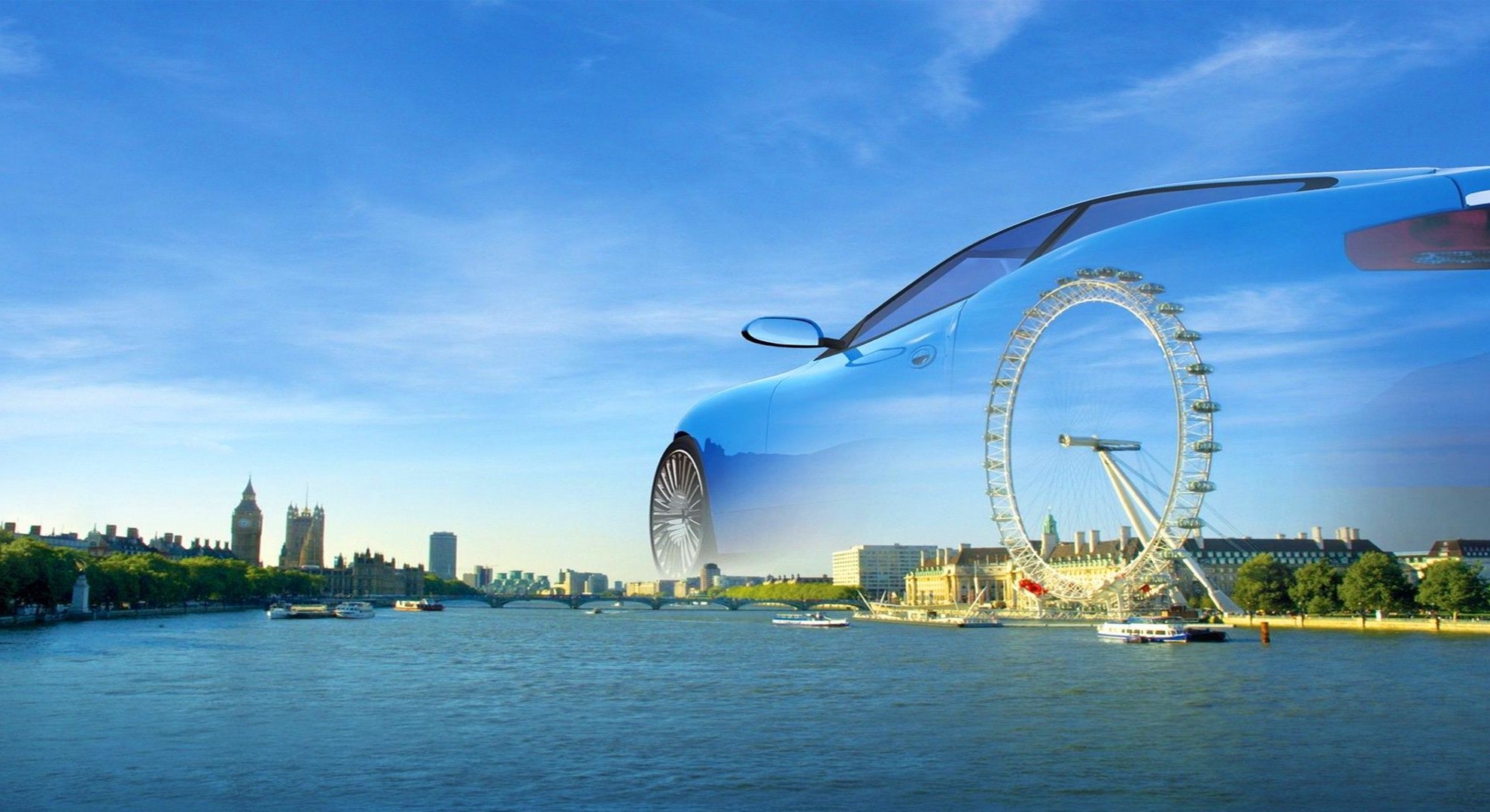 Креативный рисунок город небо машина вода