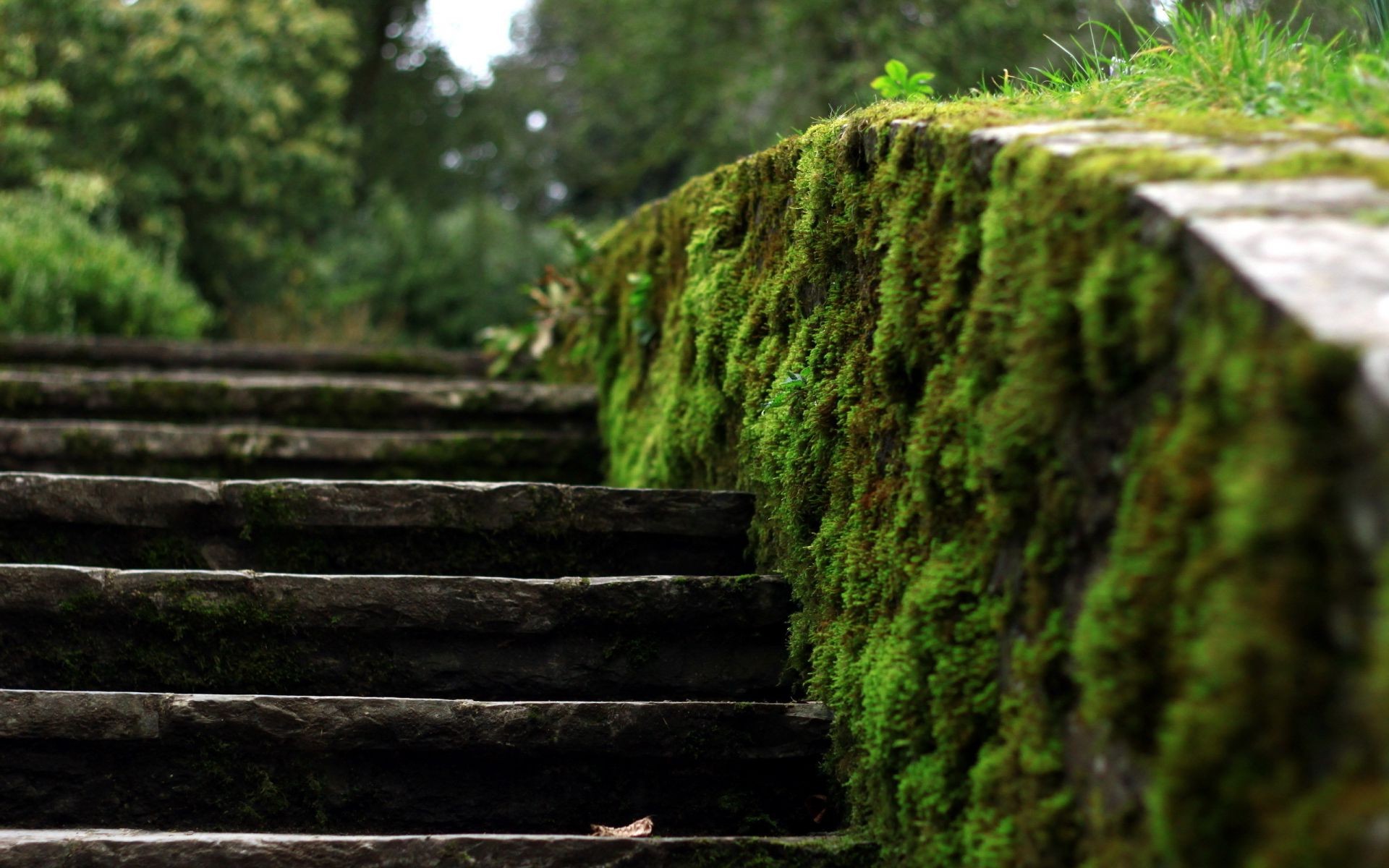 Красивый пейзаж в лесу с покрытим мохом в лесу