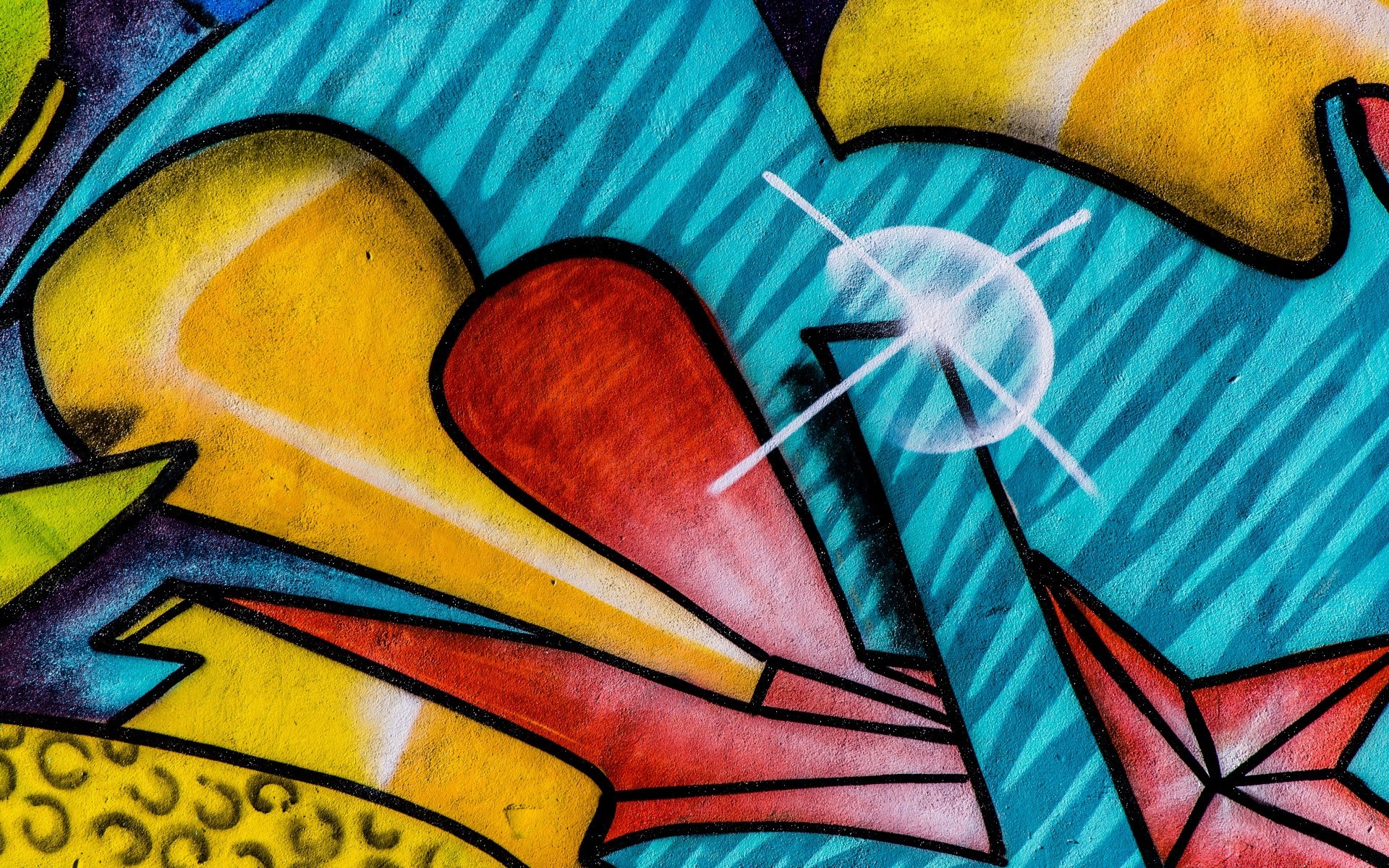Fallout, граффити с изображением размноженного персонажа в голубом костюме с желтой полосой