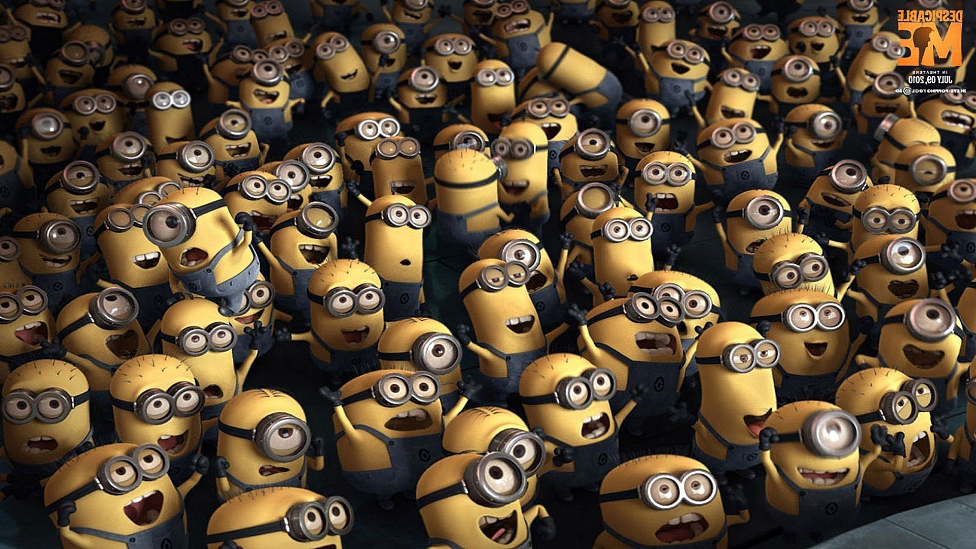 Жёлтые миньоны в комбинезонах выражают различные эмоции