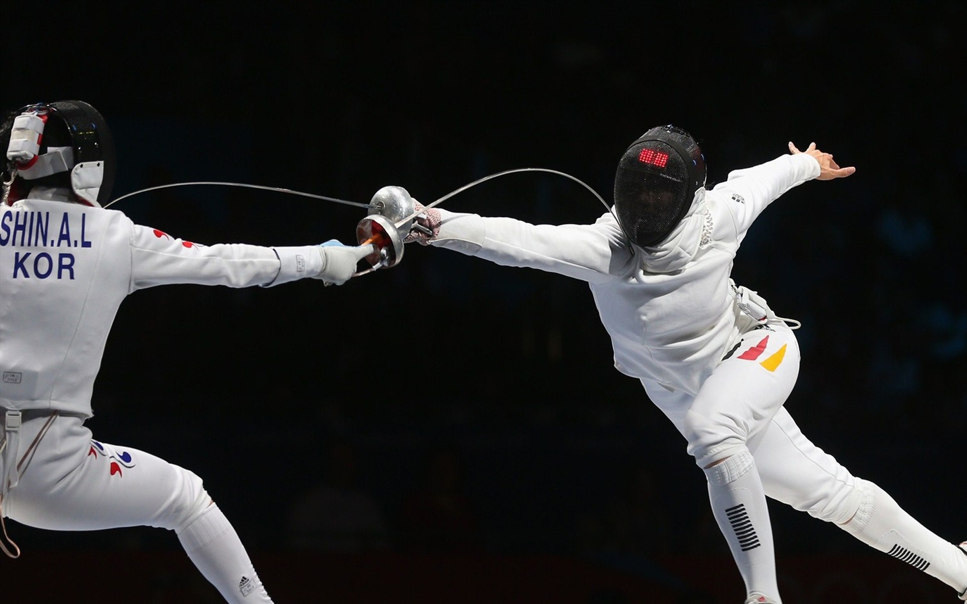 Два мультяшки в костюмах зайцев занимаются фехтованием