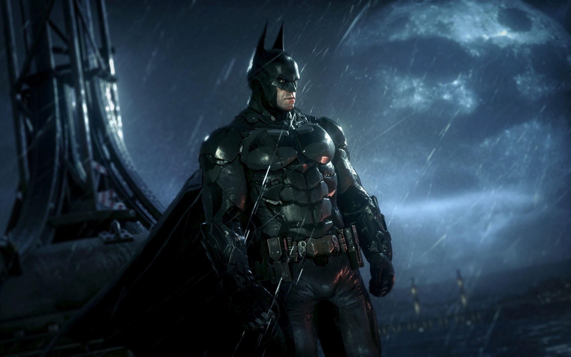 Batman в костюме стоит под дождем - обои на рабочий стол