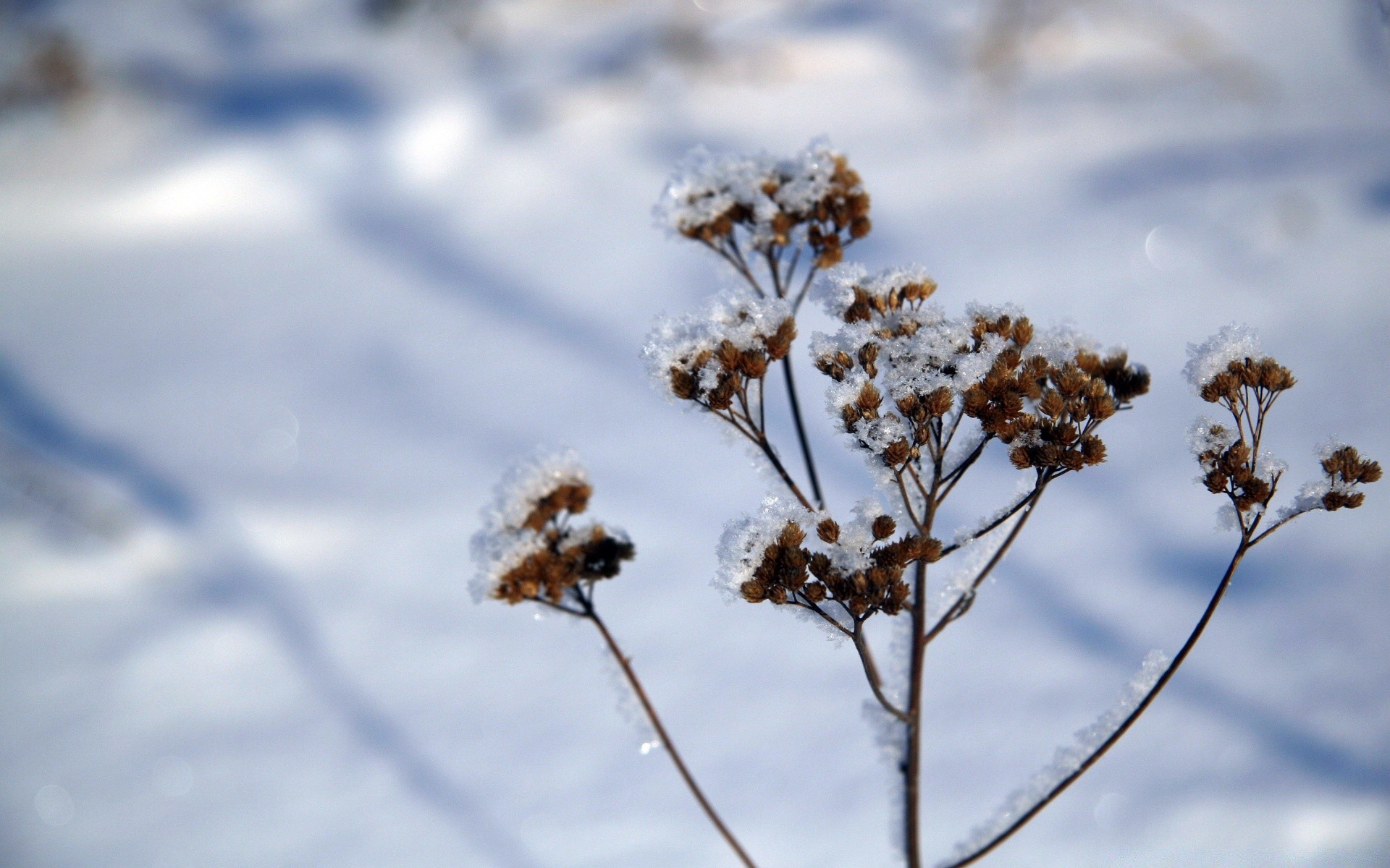 Замерзшее растение в ясный зимний день - обои на рабочий стол